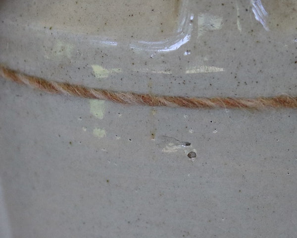 Crock has a small glaze pop on the back as shown. Expected wear on the bottom. No cracks or chips to report and the condition is great.